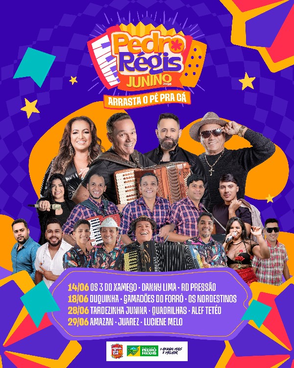 O Pedro Régis Junino 2025 acontecerá nos dias 14, 16, 17, 18, 28 e 29 de junho, e contará também com o 4º Festival de Quadrilhas, marcado para o dia 5 de julho. A festa, que neste ano apresenta um novo nome e conceito, segue firme nas tradições nordestinas e aposta no forró raiz como identidade principal das festividades.