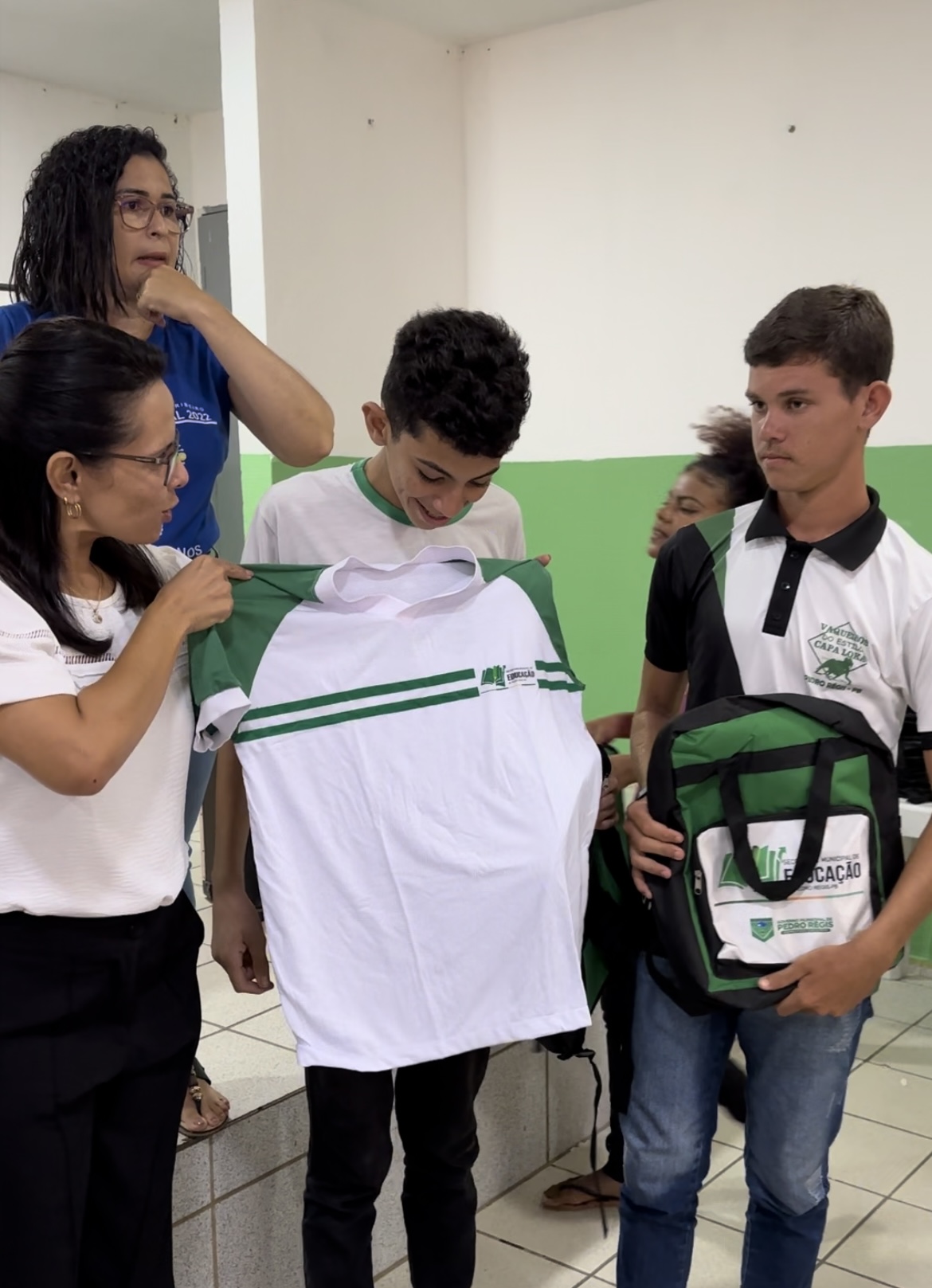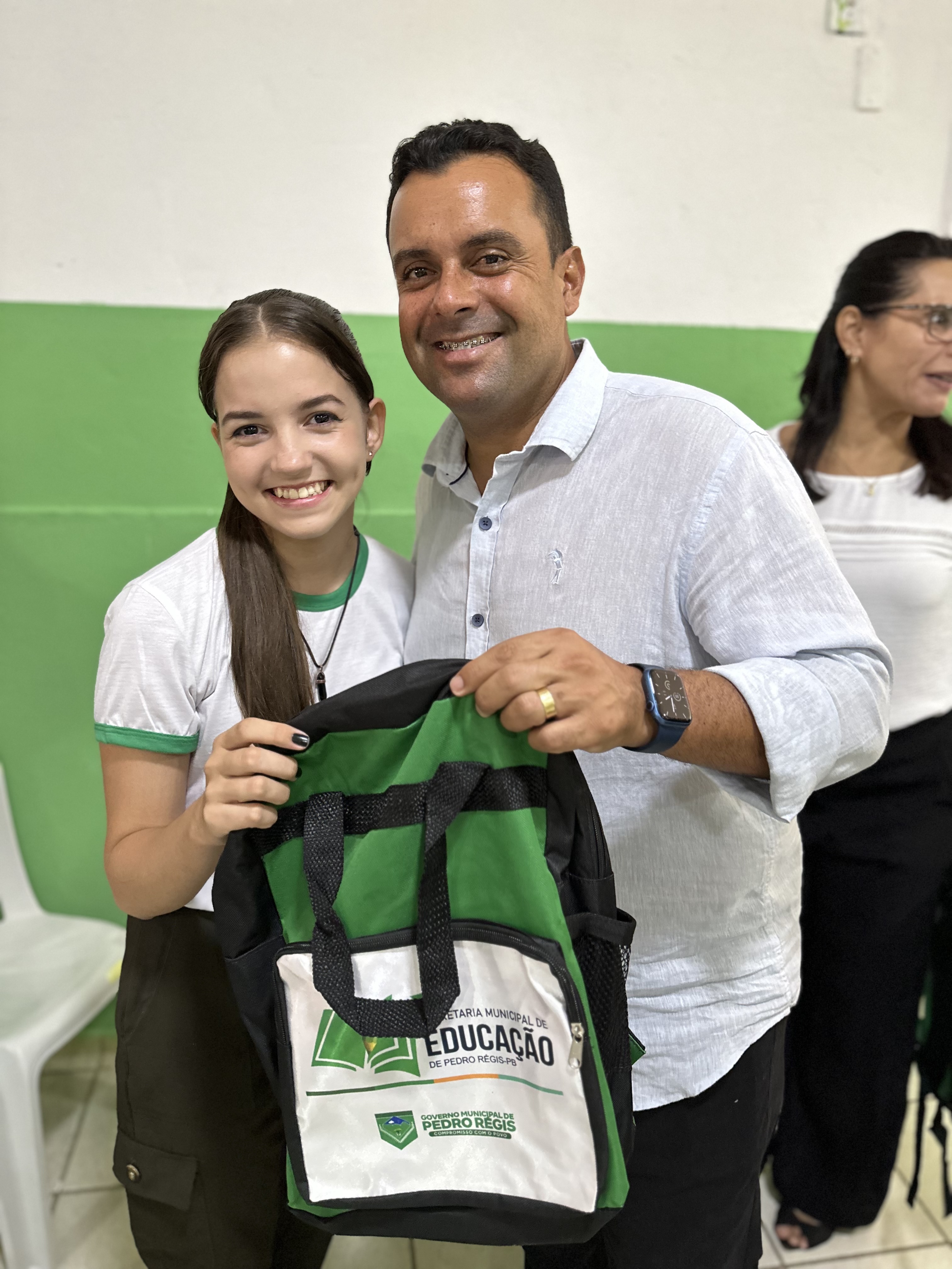 No Dia da Escola, celebrado nesta quarta-feira (15), o Governo Municipal de Pedro Régis, por meio da Secretaria de Educação, seguiu com a distribuição de kit com material e fardamento para todos os alunos da rede municipal de ensino. De acordo com a secretária Érika Galvão, mais de mil alunos serão beneficiados em mais um ano de investimentos que objetiva motivar a frequência do alunado em sala de aula. Outra boa notícia anunciada pela prefeita Michele Ribeiro foi a de que o Governo Municipal enviará projeto de Lei à Câmara para que a distribuição de kit com material e fardamento aos alunos do município torne-se obrigatória. Ana Maria, mãe de aluno do 9º ano da Escola Daura Ribeiro, destacou que o material é importante pois permite que os pais e responsáveis economizem o valor que investiriam na compra. Já para a aluna Maria Luiza, o recebimento de cadernos, canetas, corretivo, mochila, borracha, entre outros materiais, dá mais motivação para os estudos. Toda distribuição será feita nas escolas para os próprios alunos, otimizando a entrega e desburocratizando o processo. Ascom Pedro Régis