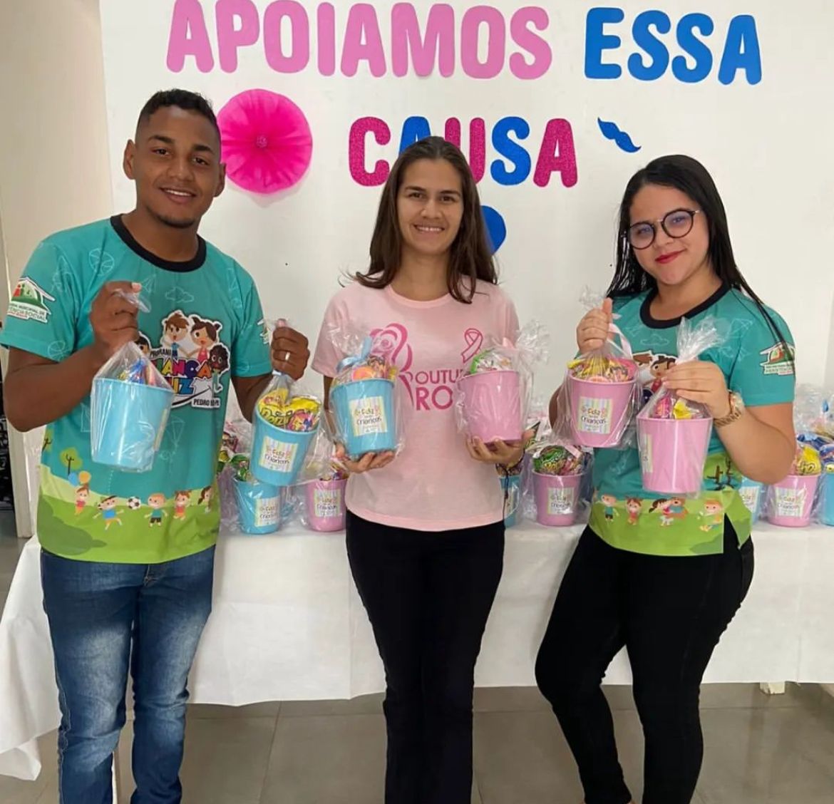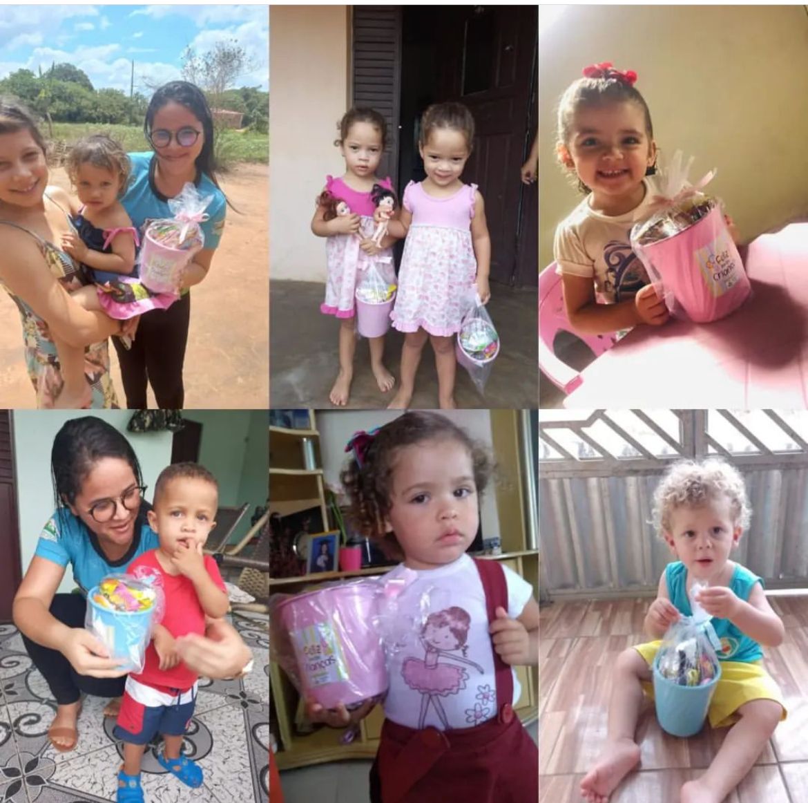 receberam brindes. Tudo muito colorido e animado, do jeitinho que a criançada