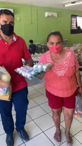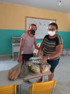 Mil e cinquenta (1.050) estudantes receberam o kits de alimentação escolar entregues em todas as Escolas do município, pelo Governo Municipal de Pedro Régis, por meio da Secretaria de Educação (Smeduc), nesta terça-feira, 21. A distribuição do chamado "kit merenda" tem o objetivo de minimizar os impactos da pandemia de Covid-19 junto as famílias mais vulneráveis do município, garantindo a segurança alimentar, enquanto as aulas são realizadas de maneira remota.Os kits foram garantidos também para os estudantes dos 5º e 9º anos, que retornam às aulas presenciais no próximo dia 04, e também receberão a merenda em dias de aulas.Cada estudante recebeu um (01) kit contendo treze (13) itens com produtos da cesta básica e mais alimentos da agricultura familiar: 01 kg de arroz, 01 kg de feijão, 01 kg de açúcar, 01 pct de fubá, 01 pct de carne de soja, 02 pct de macarrão, 01 pct de leite, 01 pct de biscoitos, 01 lt de óleo, 01 cartela com ovos, além de macaxeira, cebola e cenoura.A entrega foi acompanhada pela prefeita Michele Ribeiro, pela secretária Érika Galvão, e pelos vereadores Virgínio Ribeiro e Sarita. Todos concordam com a importância da ação em virtude da suspensão das aulas presenciais, por causa da pandemia. "Nossa gestão tem auxiliado as famílias em situação de vunerabilidade, através de doações de cestas básicas, por meio da Secretaria de Assistência Social, e a entrega desses chamados "kit merenda escolar" reforça e garante a segurança alimentar das famílias", frisou a prefeita.Ascom Pedro Régis