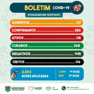 Mais informações podem ser acompanhadas no site do Governo do Estado, no paraiba.pb.gov.br, ou pelo site do Governo Municipal de Pedro Régis, no pedroregis.bo.gov.br.