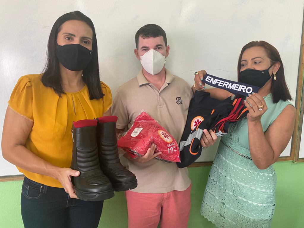 Na manhã desta quinta-feira, 04, o Governo Municipal de Pedro Régis, por meio da Secretaria de Saúde, fez a entrega do novo fardamento à equipe do Serviço de Atendimento Móvel de Urgência (SAMU). A ação cumpre os protocolos de segurança e representa a valorização dos profissionais por parte do Governo Municipal. A entrega contou com a presença da prefeita Michele Ribeiro e da secretária da Saúde, Creuza de Oliveira.O fardamento é composto de um macacão, uma camiseta, uma calça e um par de botas. Além de identificar, o uniforme é específico para a função, além disso, é de extrema importância para a proteção individual do profissional. O enfermeiro Eduardo Ribeiro, que trabalha há mais de 08 anos na Saúde de Pedro Régis, mas nesse ano está como enfermeiro no SAMU, se pronunciou em nome da equipe."O fardamento é de extrema importância para nós, já que ele complementa os EPIs. Nós fazemos o atendimento pré-hospitalar, e temos mais chances de sofrer acidentes de trabalho, pois prestamos socorro nas estradas, rodovias... o fardamento têm faixa refletiva o que possibilita a visibilidade do profissional pelos condutores de veículos, além de nos proteger de fluídos e secreções. Agradecemos a prefeita Michele Ribeiro pela sensibilidade. É a ação de um Governo que visa o melhor para o município. Em poucos dias de gestão, ela já garante a nós o fardamento e ao povo de Pedro Régis uma equipe completa no atendimento do SAMU. Todos ganham, principalmente a população", declarou Eduardo.A equipe de profissionais de Pedro Régis, que antes tinha apenas um condutor, agora é formada por um condutor, um técnico de enfermagem e um enfermeiro, atendendo a demanda pactuada entre os municípios de Jacaraú e Curral de Cima, as três cidades recebem o atendimento do SAMU.Ascom Pedro Régis