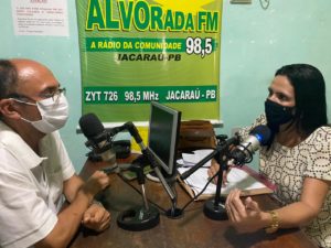 Na tarde desta quarta-feira, 04, a prefeita Michele Ribeiro concedeu entrevista ao Programa "Jornal Meio Dia", do radialista Ramos Silva, rádio Alvorada FM. Na pauta, prestação de contas do primeiro mês de gestão.A prefeita falou sobre os desafios enfrentados por encontrar as finanças da Prefeitura totalmente defasada. "Nós só herdamos dívidas, que montam a casa dos milhões", declarou Michele. Ainda assim, em pouco mais de 30 dias de gestão o governo municipal conseguiu realizar diversas ações em todas as áreas.Além das ações, a gestão conseguiu fazer o conserto de veículos, reparos na estrutura das escolas e postos de saúde e contratar o quadro da equipe de atendimento médico dos três postos da Estratégia de Saúde da Família (ESF): Lages, Barro Vermelho e centro da Cidade.Outra novidade anunciada pela prefeita, foi a contratação da equipe do "Núcleo de Saúde da Família" (Nasf) e o calendário anual de pagamento. A partir de agora, todos os servidores públicos receberão seus salários no último dia do mês. "É um avanço. Garantir o pagamento dos servidores e dos fornecedores em dia, é reafirmar nosso compromisso de valorizar nossos profissionais e fortalecer a economia local. O pagamento em dia será uma prioridade do nosso governo", destacou.Na comitiva, Michele esteve acompanhada dos vereadores: Gino do Tempero, Téia do Abacaxi, Virgínio Ribeiro e Erijackson Pessoa, além da secretária da Educação, Érika Galvão e do secretários da Agricultura, Toinho da Cadeiras. Durante sua participação, que contou com todos os cuidados sanitários; ela recebeu o carinho de dezenas de ouvintes de todo o município. Mensagens de apoio via telefone e WhatsApp, com agradecimentos pelo trabalho que já foi realizado. "Meu compromisso é com o povo", finalizou a prefeita.